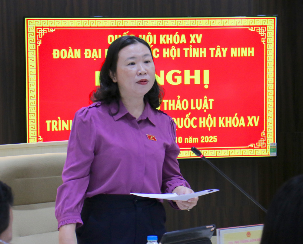 Sáng 13/10, Đoàn đại biểu Quốc hội (ĐBQH) tỉnh Tây Ninh tổ chức Hội nghị đóng góp ý kiến đối với các dự án Luật trình Quốc hội thông qua tại Kỳ họp thứ 10, Quốc hội khóa XV. Phó Trưởng đoàn chuyên trách Đoàn ĐBQH tỉnh Tây Ninh Lê Thị Song An chủ trì hội nghị.