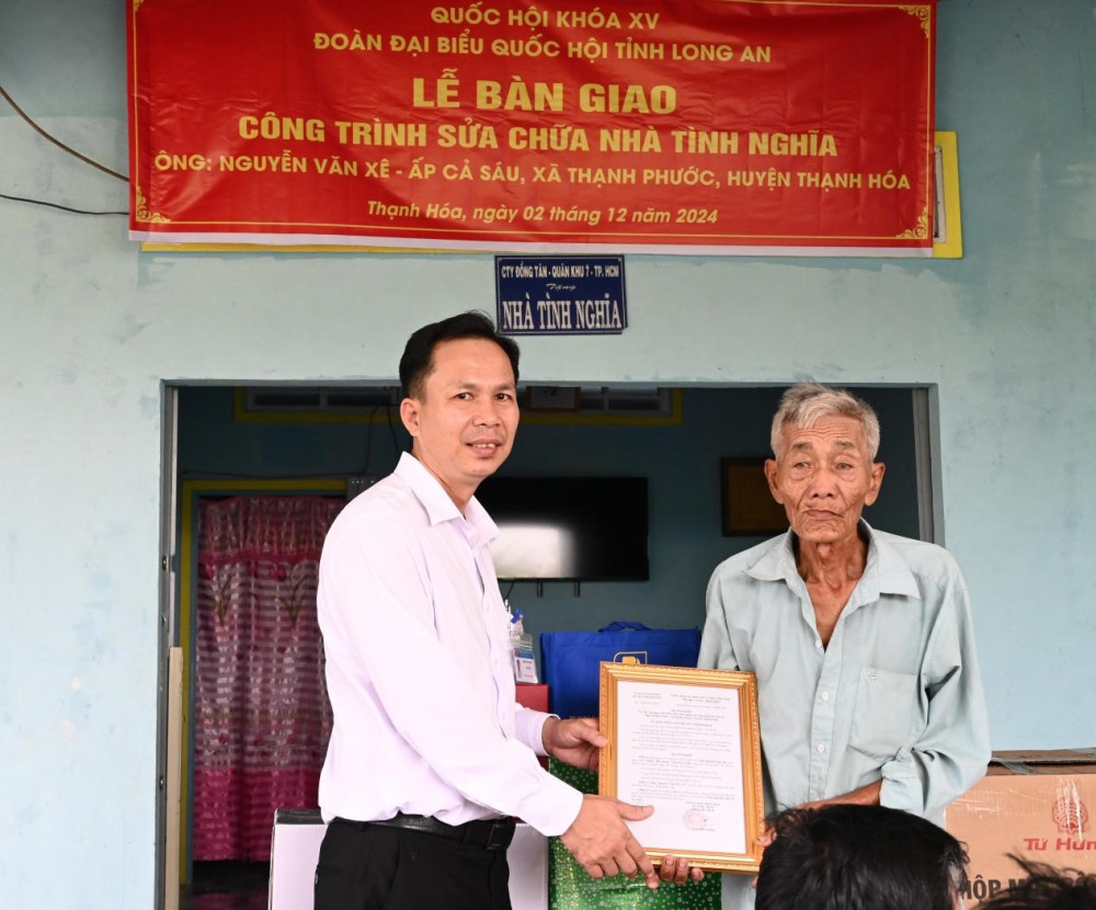 Chiều 02/12, Đoàn đại biểu Quốc hội (ĐBQH) tỉnh Long An gồm Trung tướng Lê Tấn Tới - Ủy viên Trung ương Đảng, Ủy viên Ủy ban Thường vụ Quốc hội, Chủ nhiệm Ủy ban Quốc phòng và An ninh của Quốc hội; Phó Bí thư Thường trực Tỉnh ủy, Trưởng đoàn ĐBQH tỉnh - Nguyễn Thanh Hải; Phó Chủ nhiệm Ủy ban Tư pháp của Quốc hội - Hoàng Văn Liên; Phó Chủ nhiệm Ủy ban Khoa học, Công nghệ và Môi trường của Quốc hội - Nguyễn Tuấn Anh; Phó Trưởng đoàn chuyên trách Đoàn ĐBQH tỉnh - Lê Thị Song An; Giám đốc Sở Tư pháp tỉnh - Phan Thị Mỹ Dung; Phó Giám đốc Trung tâm Kiểm soát bệnh tật - Nguyễn Hoàng Uyên tổ chức các hoạt động tri ân và hỗ trợ ý nghĩa tại huyện Thạnh Hóa.