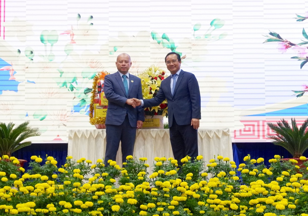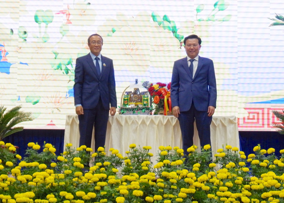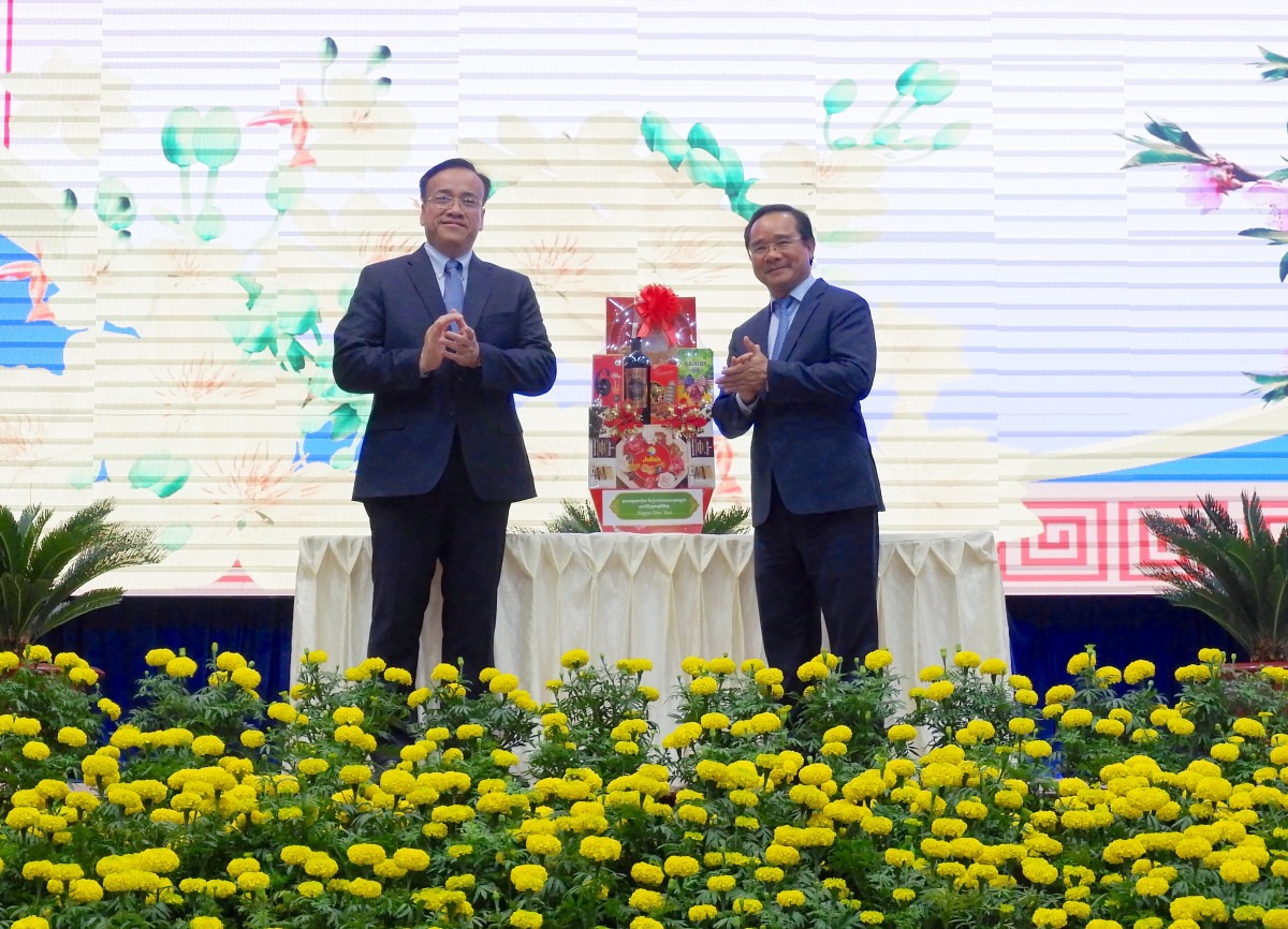 Sáng 02/02, Đoàn đại biểu tỉnh Svay Rieng, Vương quốc Campuchia do Tỉnh trưởng ban hành chính tỉnh Svay Rieng, Trưởng đoàn đại biểu tỉnh Svay Rieng - Peng Posa; Tỉnh trưởng ban hành chính tỉnh Prey Veng, Trưởng đoàn đại biểu tỉnh Prey Veng - Sourn Somalin, các thành viên trong đoàn và Tổng lãnh sự Vương quốc Campuchia tại TP.HCM - Chan Sorykan đến thăm, chúc tết tỉnh Long An nhân dịp Xuân Giáp Thìn 2024.