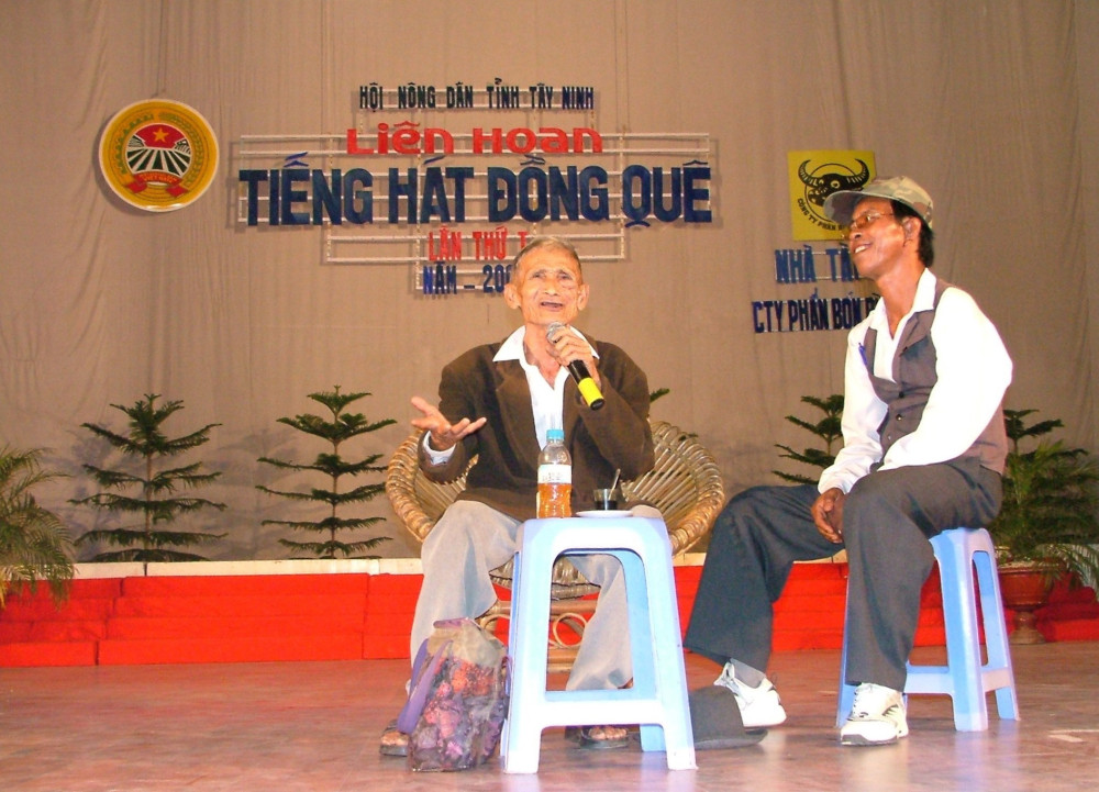 Tại Liên hoan “Tiếng hát đồng quê” lần thứ I - 2005 do Hội Nông dân tỉnh Tây Ninh tổ chức, đến chương trình tham gia liên hoan của Đội văn nghệ Hội Nông dân huyện Trảng Bàng, một cụ già từ hàng ghế khán giả thủng thỉnh bước lên sân khấu, ông kéo ghế ngồi xuống, mở chiếc giỏ xách còn đầy bụi đất, lôi ra chai nhựa đựng nước trà, mở hũ đựng cà phê rót ra ly, nhấp một ngụm, nói với vào bên trong cánh gà: “Mồ tổ bây, đứng đó đợi tui hát xong rồi đưa tui về!”.