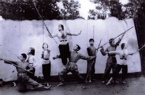 Đoàn Văn công Tây Ninh biểu diễn tiết mục múa Đồng khởi phục vụ cán bộ, chiến sĩ Tiểu đoàn 14, năm 1971