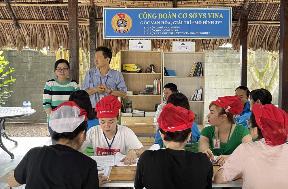 Theo Trưởng phòng Nhân sự Công ty TNHH Một thành viên YS Vina Nguyễn Thị Thanh Trúc, một trong những điểm nhấn là góc văn hóa, giải trí "Mô hình 3V" đọc sách được bố trí ngay tại công ty. Với gần 50 đầu sách và báo, tạp chí, người LĐ có thể tìm đọc nhiều nội dung bổ ích, từ các tờ báo như Báo Nhân Dân, Báo Lao Động,... đến những đầu sách về kỹ năng sống, kỹ năng lãnh đạo, tư duy sáng tạo, học tập và làm theo tấm gương đạo đức Hồ Chí Minh.