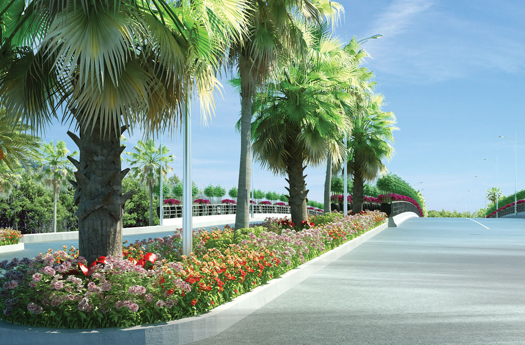 Phối cảnh 3D cầu dẫn vào Khu Công nghệ Môi trường xanh tại tỉnh Long An