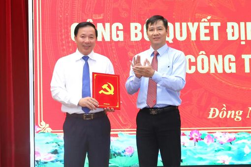 Đồng chí Nguyễn Thành Tâm, Ủy viên Trung ương Đảng, Phó Trưởng Ban Tổ chức Trung ương trao Quyết định điều động, chỉ định đồng chí Nguyễn Văn Út tham gia Ban Chấp hành, Ban Thường vụ và giữ chức Phó Bí thư Tỉnh ủy Đồng Nai nhiệm kỳ 2025-2030. Ảnh: Huy Anh