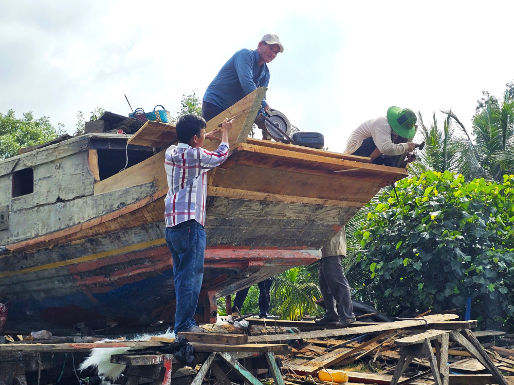 Anh Huỳnh Văn Hiệu (áo sọc caro) là chủ xưởng đóng ghe gỗ tại Tân Tập còn duy trì hoạt động đến nay. Tuy nhiên, hoạt động của xưởng chủ yếu là sửa chữa. Mỗi năm, xưởng chỉ đóng từ 1 - 2 chiếc ghe mới. Anh Hiệu cho biết, nghề đóng ghe gỗ ngày càng khó khăn, tuy nhiên ghe gỗ vẫn được ưu tiên lựa chọn khi đi biển nên người làm nghề vẫn còn sống được với nghề