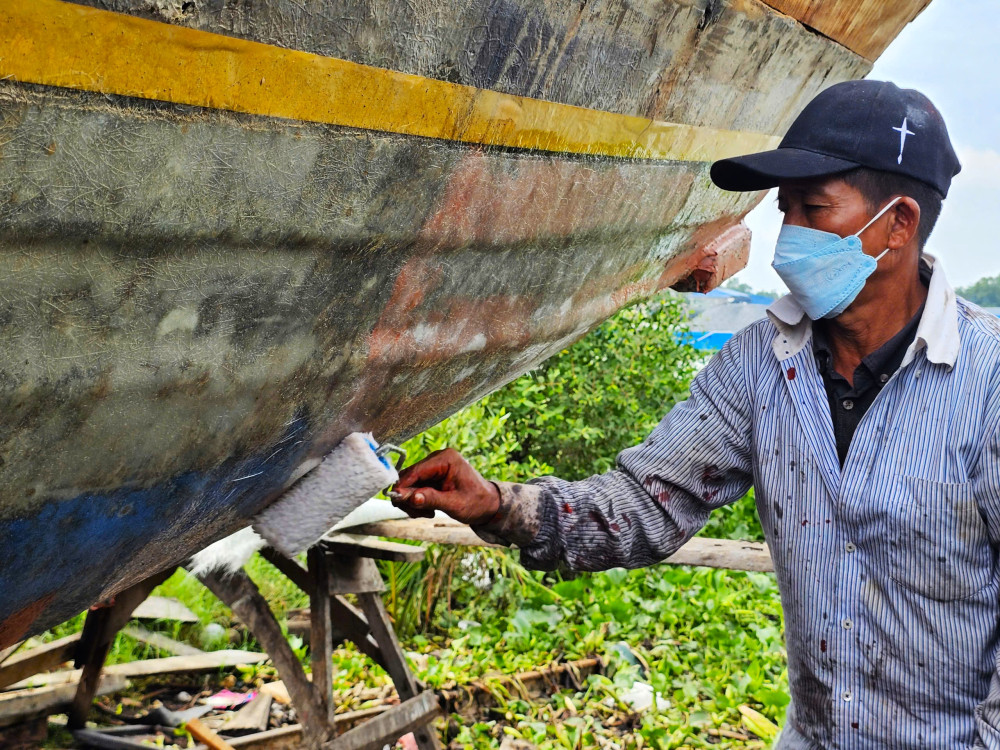 Quét keo cũng là công đoạn cần thiết để tăng độ bền cho ghe