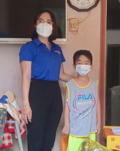 Bí thư Đoàn phường 1 (TP.Tân An) - Trần Thị Kim Nhi đến thăm và tặng quà cho em Lê Hoàng Duy mồ côi mẹ do Covid-19