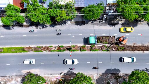 Di dời cây xanh và đất trên các dải phân cách (Ảnh: TÂM GIANG)