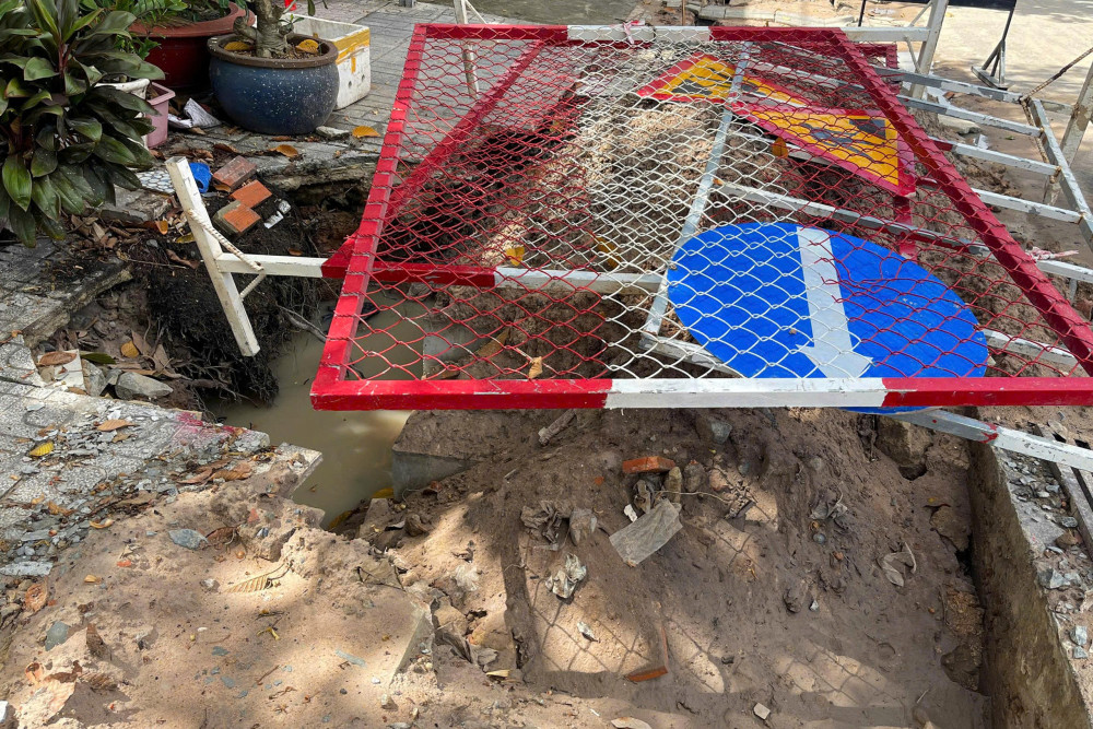 Ông Phạm Văn Chi, ngụ khu phố 2, phường Long Hoa bức xúc trước cách thi công của nhà thầu do nhà thầu cho đào vỉa hè, lắp đặt ống thu gom nước thải, sau đó cho lấp đất lại sơ sài. Do lấp đất sơ sài nên những trận mưa lớn vừa qua, đất tại vị trí đào lắp đặt ống bị sụp, có nơi sụp tạo nên hàm ếch khoét sâu vào thềm nhà dân. Tuyến đường này được xem là tuyến đường thương mại do các hộ dân kinh doanh khá nhiều nên việc thi công như thế ảnh hưởng lớn đến hoạt động kinh doanh của người dân.