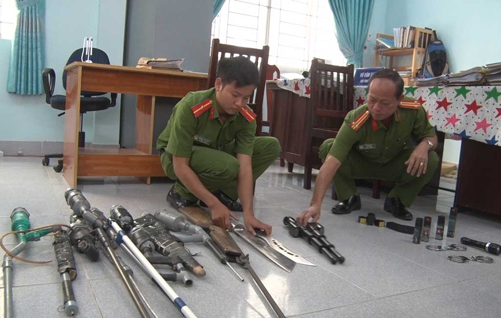 Từ đầu năm đến nay, lực lượng chức năng thu gom, giao nộp 15 loại vũ khí, vật liệu nổ và công cụ hỗ trợ: Gậy điện, súng bắn chim, bình xịt cay, súng săn tự chế, súng cồn tự chế, mã tấu,...