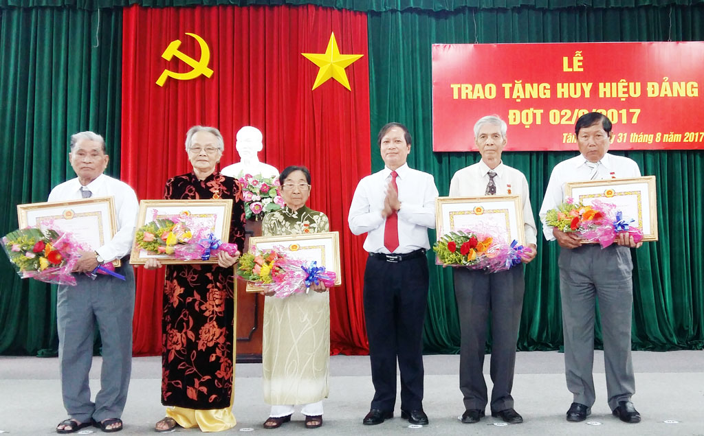 Ngày 01/9, một số địa phương trên địa bàn tỉnh Long An tổ chức trao huy hiệu Đảng cho đảng viên cao niên đợt 02/9.