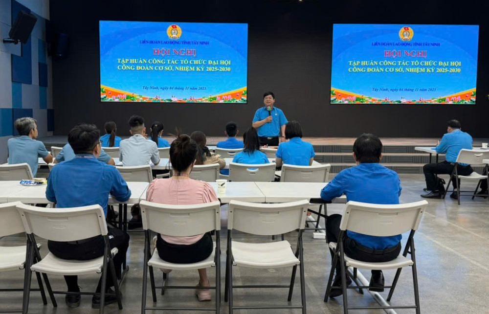 Từ ngày 28/10 – 06/11/2025, các Tổ công tác số 4,5,6,7 của Liên đoàn Lao động tỉnh Tây Ninh tổ chức 8 lớp tập huấn chuyên sâu về triển khai, hướng dẫn chuẩn bị Đại hội Công đoàn cơ sở cho các cán bộ Công đoàn cơ sở thuộc các khu công nghiệp trên địa bàn tỉnh.
