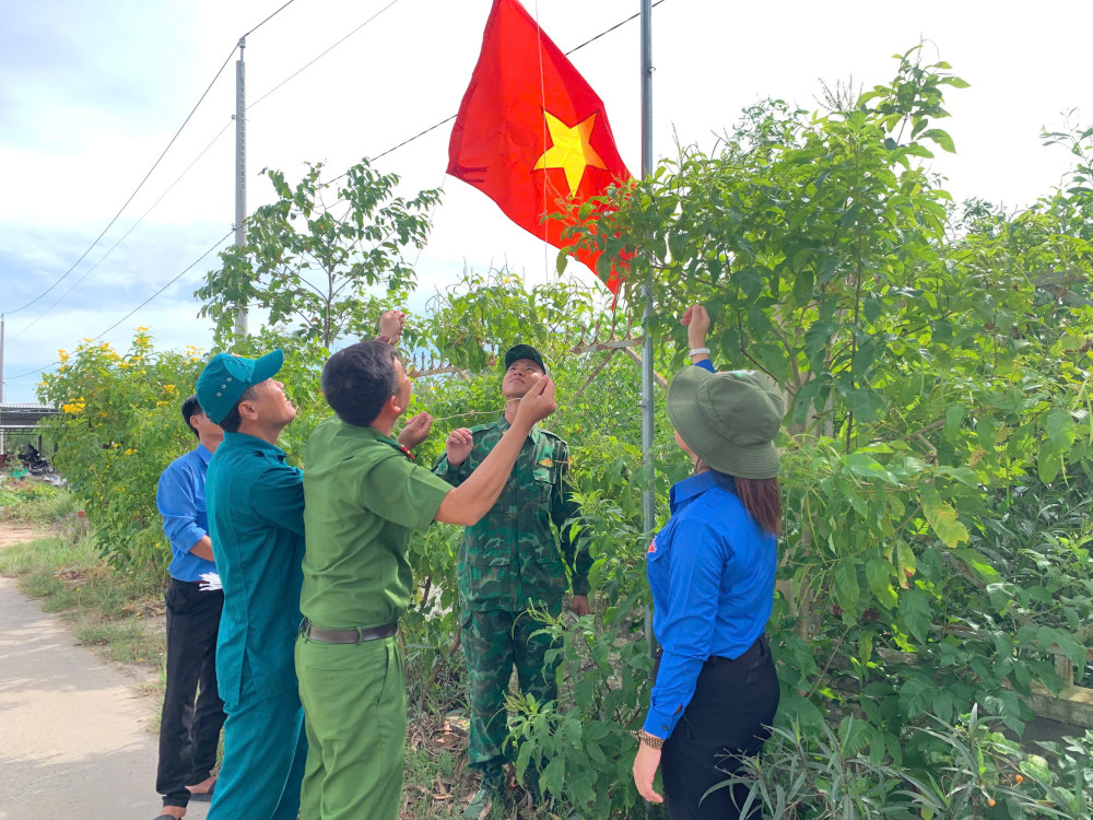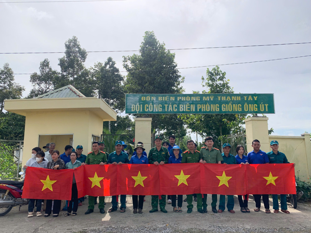 Hướng tới kỷ niệm 80 năm Cách mạng Tháng Tám và Quốc khánh 02/9, Đồn Biên phòng Mỹ Thạnh Tây phối hợp Đoàn Thanh niên, Công an, Ban Chỉ huy Quân sự xã Đông Thành tổ chức treo cờ công trình “Đường cờ Tổ quốc biên cương”.