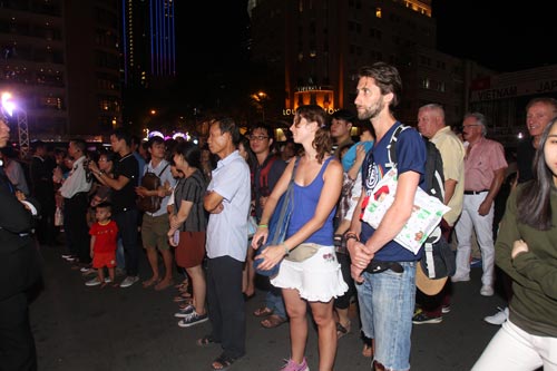 Những tiết mục cuốn hút trong đêm trao giải và khán giả đang say mê theo dõi màn hình LED bên ngoài Nhà hát Thành phố Ảnh: TẤN THẠNH - HOÀNG TRIỀU