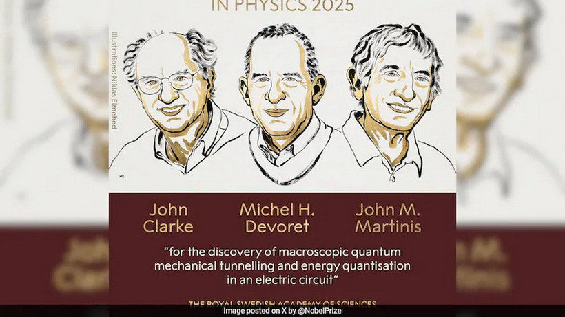Giải Nobel Vật lý 2025 được trao cho ba nhà khoa học Mỹ John Clarke, Michel H. Devoret và John M. Martinis vì phát hiện hiệu ứng đường hầm lượng tử vĩ mô và lượng tử hóa năng lượng trong mạch điện.