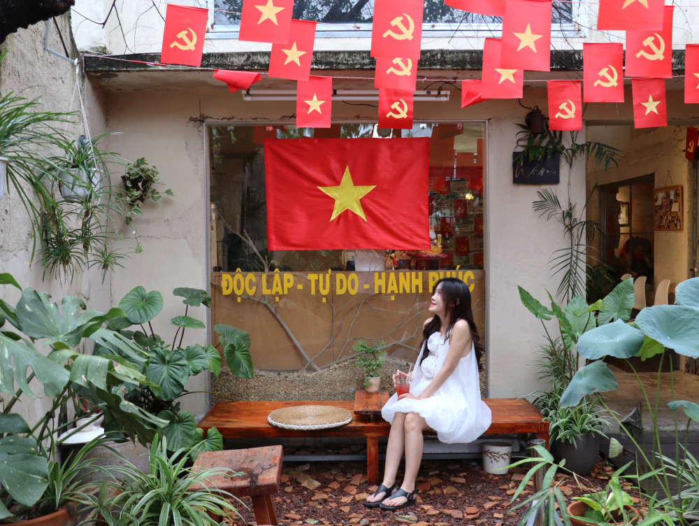 Giới trẻ nô nức check in ở quán cà phê trang trí chào mừng Quốc khánh 02/9