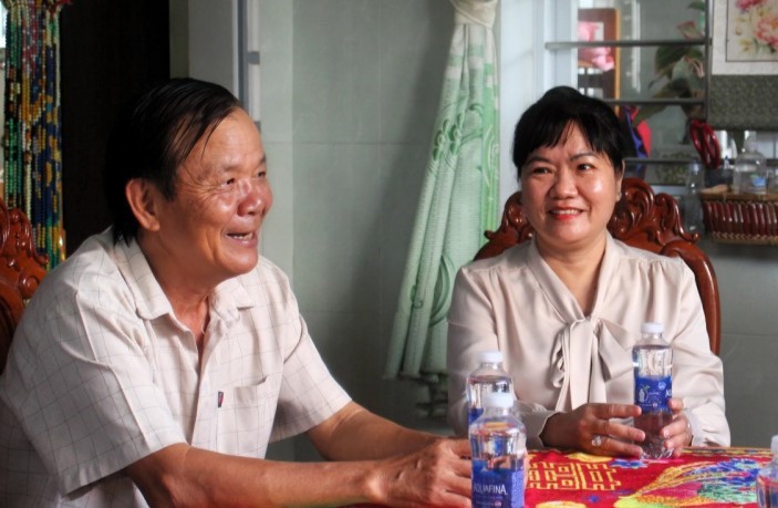 Phó Tổng Biên tập Báo và Đài Phát thanh Truyền hình Long An - Nguyễn Thị Thùy Dung đến thăm nguyên Giám đốc Đài Phát thanh và Truyền hình Long An nhân dịp kỷ niệm 100 năm Ngày Báo chí cách mạng Việt Nam