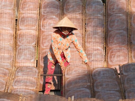 Để cho ra những chiếc bánh dẻo, thơm, người thợ phải tỉ mỉ từ khâu ngâm, ủ, xay bột đến tráng bánh, phơi bánh… Hình ảnh những nia bánh tráng phơi mình dưới nắng vàng... tạo nên một bức tranh sống động về nhịp sống ở một làng nghề và chứa đựng trong đó câu chuyện về truyền thống, văn hóa của một vùng đất./.