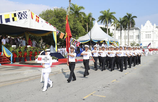 Khối sĩ quan, thủy thủ Tàu 016-Quang Trung tham gia lễ diễu binh đường phố tại AMNEX 3