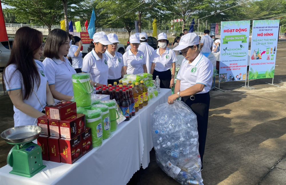 Người dân xã Cần Giuộc đổi rác thải nhựa lấy quà