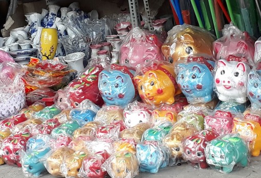 Những ngày này, dạo quanh một số tuyến đường chính hay đến các cửa hàng tạp hóa trên địa bàn TP.Tân An, tỉnh Long An chúng ta dễ dàng bắt gặp hình ảnh những chú heo đất được bày bán với nhiều mẫu mã phong phú, đa dạng. Ngoài ra, bao lì xì in hình những chú heo ngộ nghĩnh, heo mạ vàng 3D, tượng heo mạ vàng,... cũng thu hút khách chọn mua.