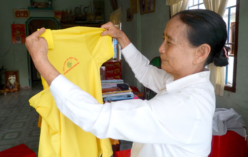 Bà Mai Thị Bỉ chia sẻ câu chuyện về mạnh thường quân hỗ trợ đồng phục cho Tổ Thiện nguyện và nhân tâm