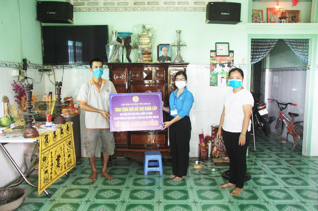 Ngày 01/9, Liên đoàn Lao động tỉnh Long An tổ chức đoàn thăm, động viên và trao quà hỗ trợ khẩn cấp cho gia đình có đoàn viên, người lao động tử vong do Covid-19 tại huyện Bến Lức.
