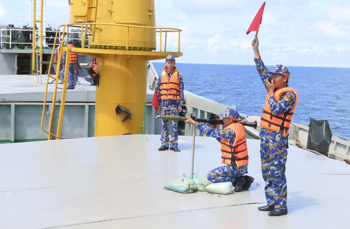 Thực hành bắn mục tiêu mặt nước của khẩu đội B41 trên Tàu Trường Sa 10