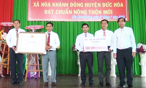 Ngày 07/7, xã Hòa Khánh Đông, huyện Đức Hòa, tỉnh Long An đón nhận danh hiệu xã đạt chuẩn nông thôn mới.