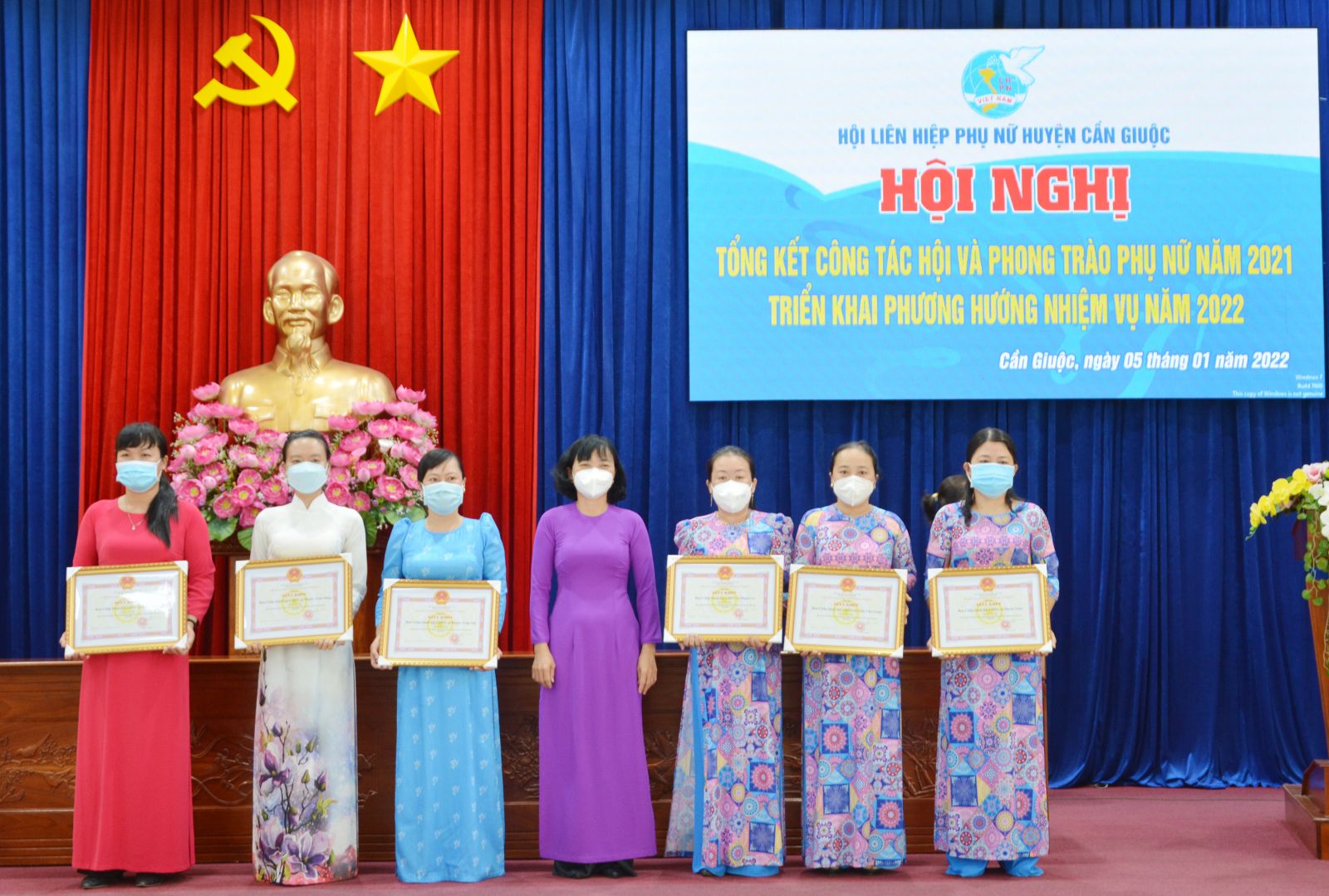 Phó Chủ tịch UBND huyện - Đào Thị Ngọc Vui tặng giấy khen cho các tập thể và cá nhân có thành tích trong công tác Hội và phong trào phụ nữ năm 2021