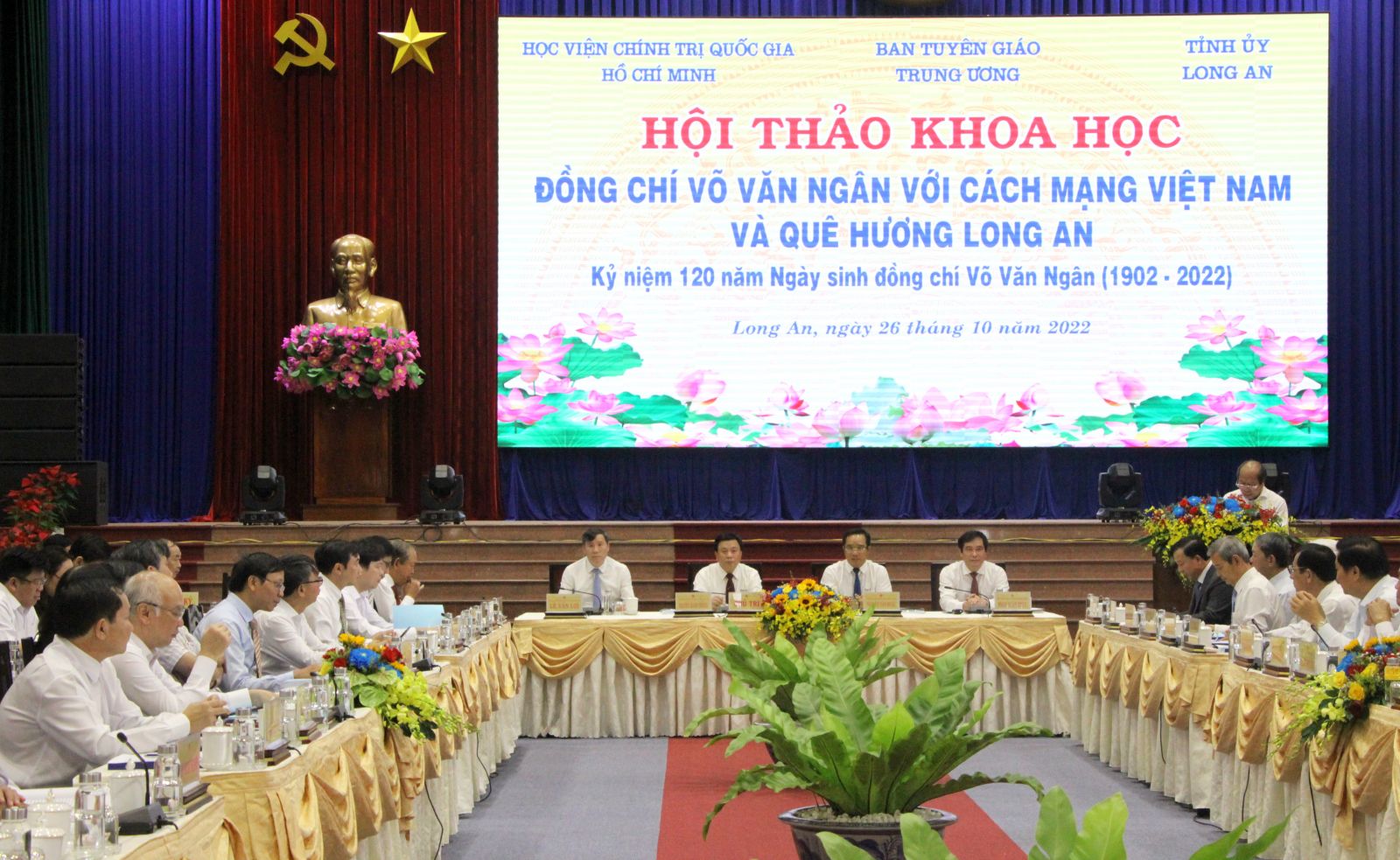 Sáng 26/10, Học viện Chính trị Quốc gia Hồ Chí Minh phối hợp Ban Tuyên giáo Trung ương, Tỉnh ủy Long An tổ chức Hội thảo khoa học “Đồng chí Võ Văn Ngân với Cách mạng Việt Nam và quê hương Long An” nhân Kỷ niệm 120 năm ngày sinh đồng chí Võ Văn Ngân (1902 - 2022).