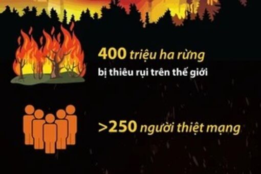Cháy rừng năm nay đã thiêu rụi gần 400 triệu ha rừng trên thế giới và thải ra 6,5 tỷ tấn khí CO2 gây hiệu ứng nhà kính.