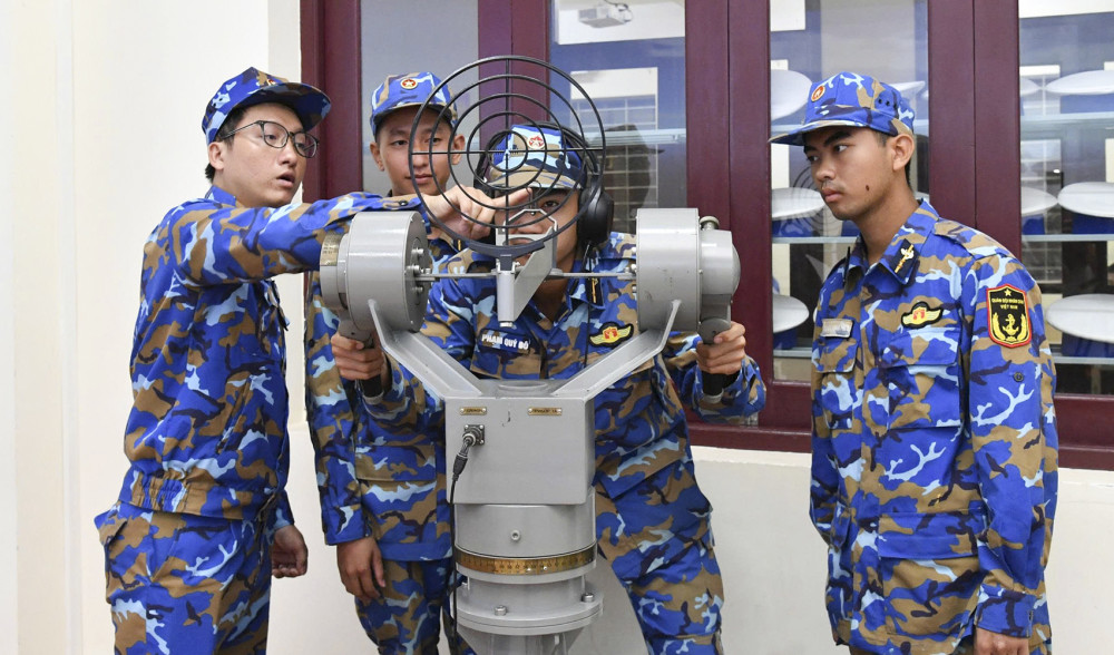 Các học viên học tập tại Phòng thực hành vũ khí chống ngầm