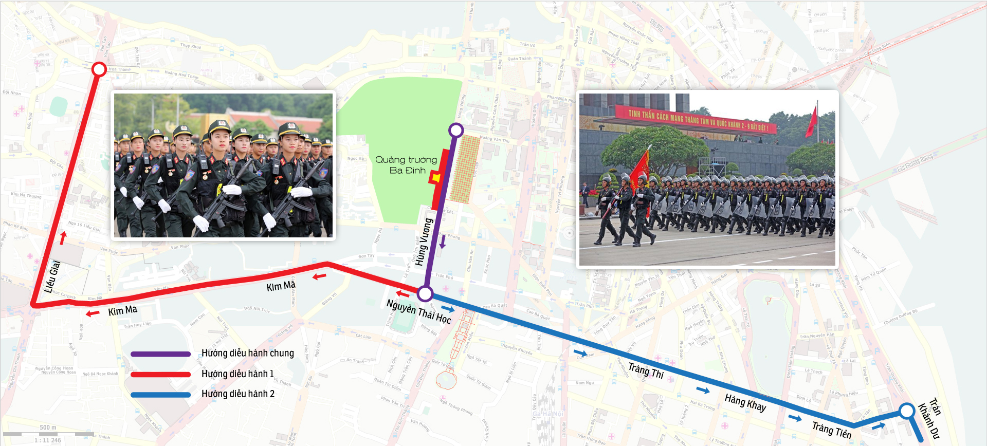 Hướng diễu binh và năm điểm bắn pháo hoa ở Hà Nội