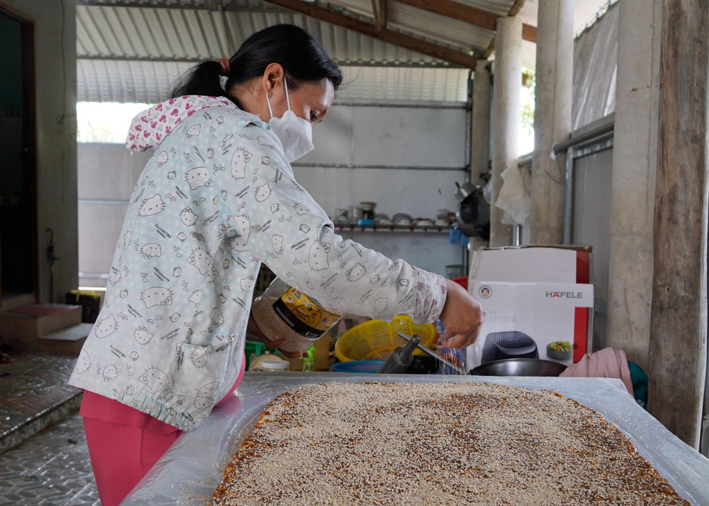 Chị Trần Thị Kim Thoa tất bật làm kẹo khóm những ngày giáp tết