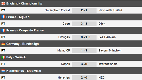 Kết quả bóng đá hôm nay 3/12, Inter Milan thua 0-3 trước Napoli, Bayern ngược dòng đánh bại Mainz 05.