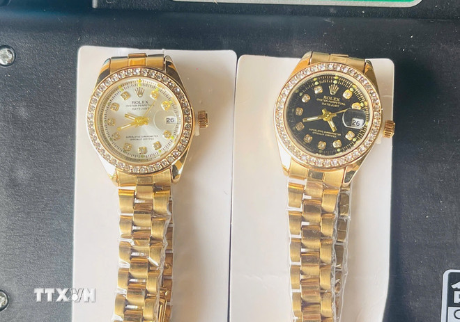 Đồng hồ đeo tay giả nhãn hiệu Rolex bị lực lượng chức năng thu giữ (Ảnh: TTXVN phát)