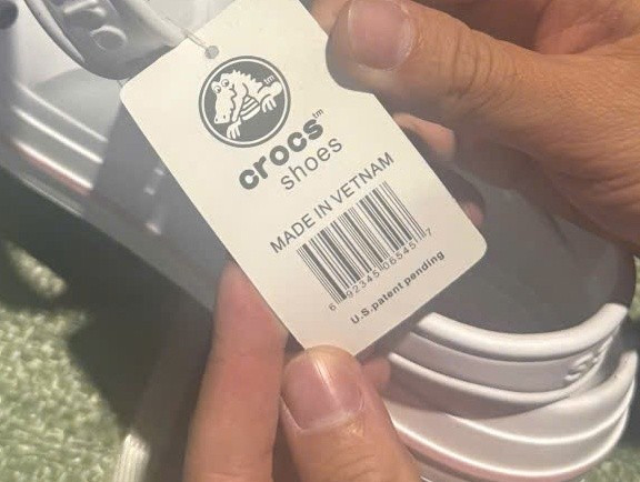Ngày 13/5/2025, Hải quan cửa khẩu quốc tế Móng Cái kiểm tra thực tế 1 lô hàng quá cảnh đã phát hiện 5.000 sản phẩm có dấu hiệu giả nhãn hiệu, vi phạm xuất xứ và có dấu hiệu vi phạm sở hữu trí tuệ. Cụ thể là 3.200 đôi dép sục nhựa có găn nhãn hiệu Crocs trên nhãn hàng hoá thể hiện dòng chữ “Made in Viet Nam”; 1.720 áo thun dài tay có gắn nhãn hiệu Chanel, Dior và Loewe trên nhãn hàng hoá thể hiện dòng chữ “Made in Thailand” (Ảnh: HQ/Vietnam+)