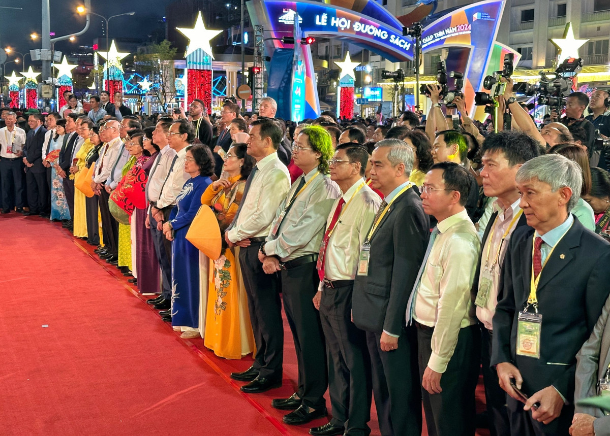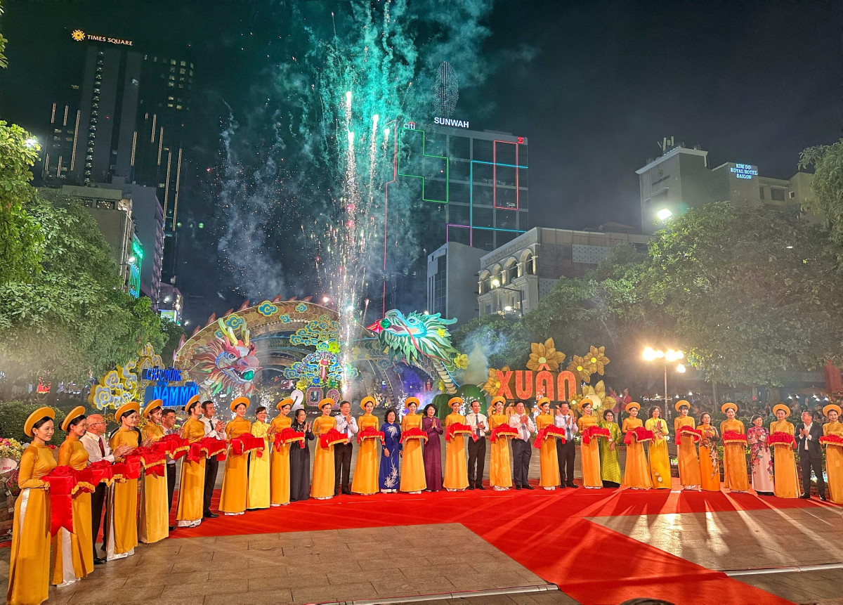 Dự lễ khai mạc Đường hoa Nguyễn Huệ Tết Giáp Thìn 2024 có sự góp mặt của ông Nguyễn Văn Nên, Ủy viên Bộ Chính trị, Bí thư Thành ủy TP.HCM; ông Nguyễn Trọng Nghĩa, Bí thư Trung ương Đảng, Trưởng ban Tuyên giáo Trung ương; bà Trương Mỹ Hoa, Nguyên Bí thư Trung ương Đảng, Nguyên Phó chủ tịch nước; bà Đặng Thị Ngọc Thịnh, Nguyên Ủy viên Trung ương Đảng, Nguyên Phó chủ tịch nước; cùng đại diện lãnh đạo các bộ, ban, sở ngành TP.HCM, các vị nguyên là lãnh đạo Trung ương, TP.HCM qua các thời kỳ, đại diện các lãnh sự quán ở TP.HCM, các doanh nghiệp…