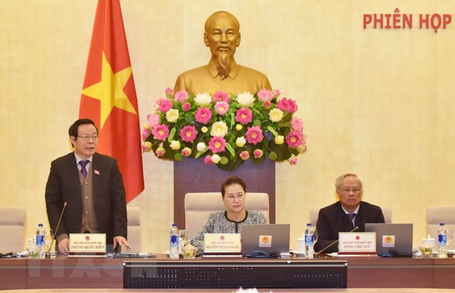 Phát biểu khai mạc phiên họp, Chủ tịch Quốc hội Nguyễn Thị Kim Ngân cho biết, tại phiên họp, Ủy ban Thường vụ Quốc hội cho ý kiến về những vấn đề còn ý kiến khác nhau của dự án Luật Thi hành án hình sự (sửa đổi); xem xét, quyết định việc cử Ủy viên Hội đồng tuyển chọn, giám sát thẩm phán quốc gia.