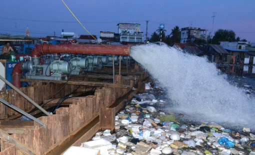 Với 20 máy bơm có công suất lớn, ngành chức năng tỉnh Kiên Giang sẽ tiến hành xả nước mặn để kéo nước ngọt từ thượng lưu về cung cấp đủ 100% nước cho hàng trăm người dân ở TP Rạch Giá.