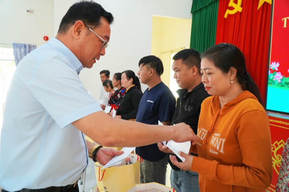Phó Chủ tịch Thường trực UBMTTQ Việt Nam tỉnh - Đỗ Thanh Hùng tặng quà cho các hộ nghèo, có hoàn cảnh khó khăn