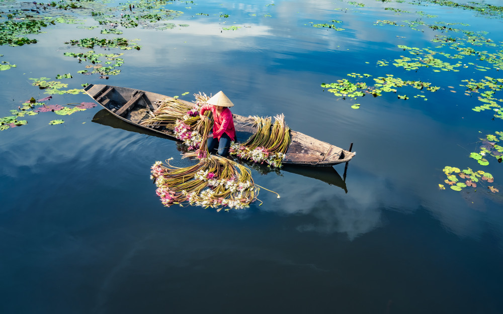 Thu hoạch bông súng (Ảnh: PHAN NHẬT ĐĂNG THƯ)
