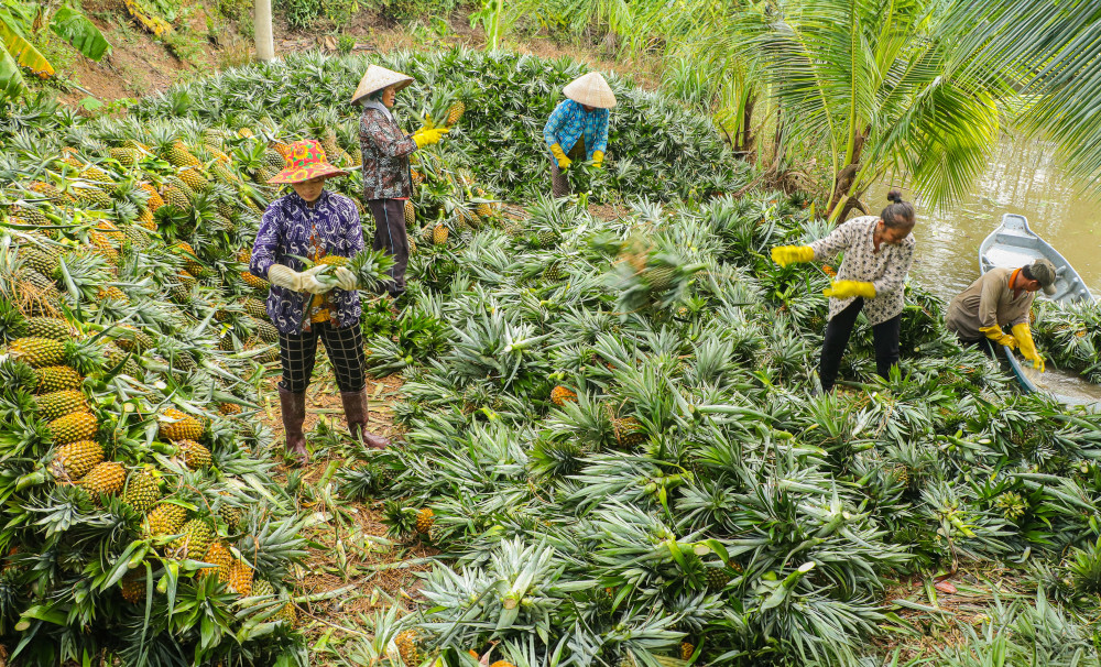 Thu hoạch khóm (Ảnh: LÊ TIẾN)