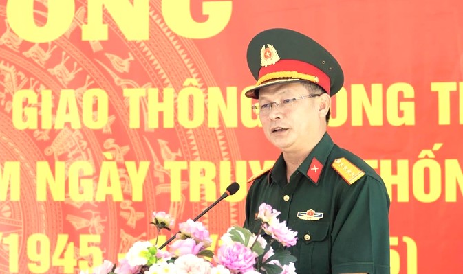 Đại tá Nguyễn Minh Tấn - Phó Chính ủy Bộ Chỉ huy Quân sự tỉnh Tây Ninh phát biểu tại chương trình