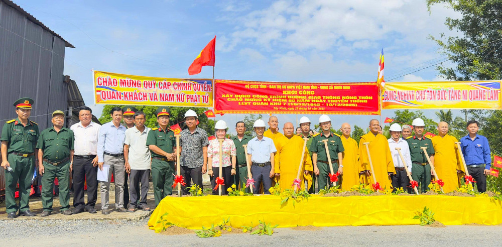 Bộ Chỉ huy Quân sự tỉnh Tây Ninh vừa phối hợp Ban Trị sự Giáo hội Phật giáo Việt Nam tỉnh và UBND xã Nhơn Ninh tổ chức Lễ khởi công xây dựng công trình giao thông nông thôn chào mừng kỷ niệm 80 năm Ngày truyền thống lực lượng vũ trang (LLVT) Quân khu 7 (10/12/1945 – 10/12/2025).