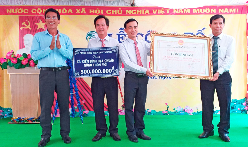 Ngày 08/10, Đảng ủy - HĐND - UBND - UBMTTQ Việt Nam xã Kiến Bình (huyện Tân Thạnh, tỉnh Long An) tổ chức lễ công bố xã đạt chuẩn xã nông thôn mới năm 2019.