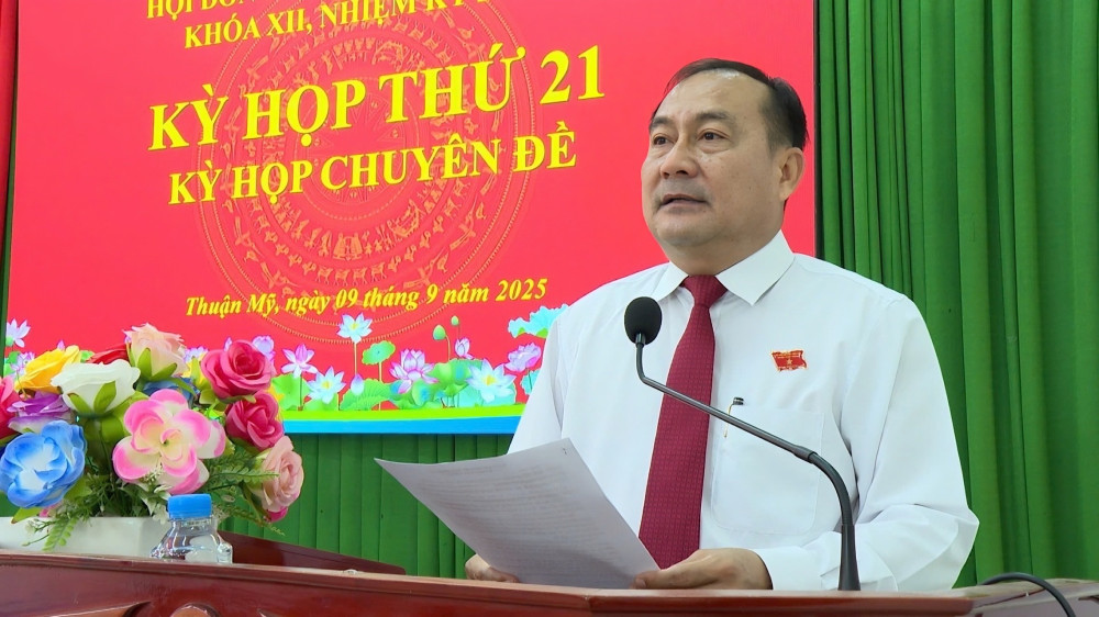 Sáng 09/9, HĐND xã Thuận Mỹ, khoá XII, nhiệm kỳ 2021- 2026 tổ chức Kỳ họp thứ 21 (kỳ họp chuyên đề). Bí thư Đảng ủy, Chủ tịch HĐND xã Nguyễn Văn Khải chủ trì kỳ họp.