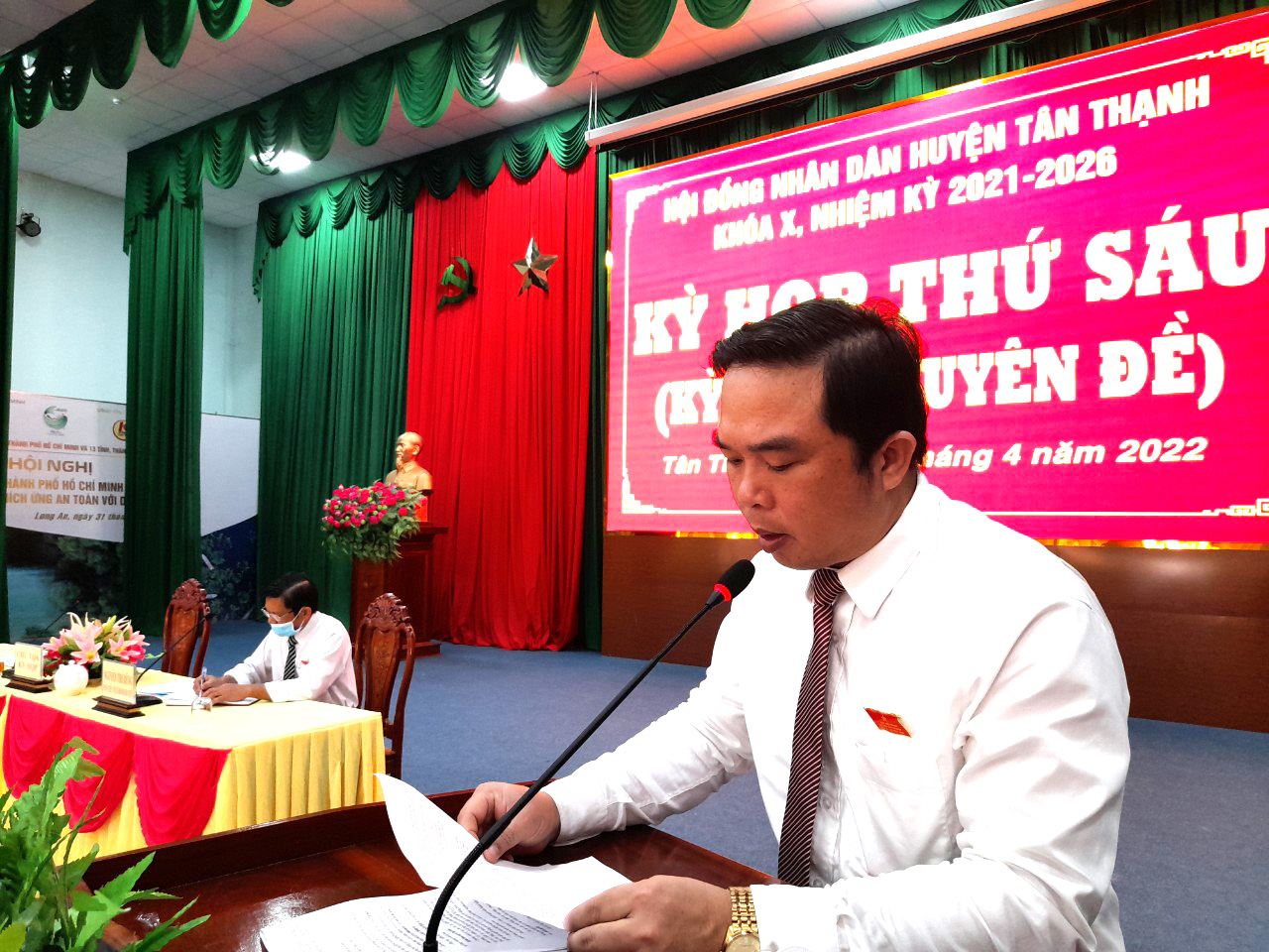 Kỳ họp thứ sáu, HĐND huyện Tân Thạnh thông qua 4 nghị quyết