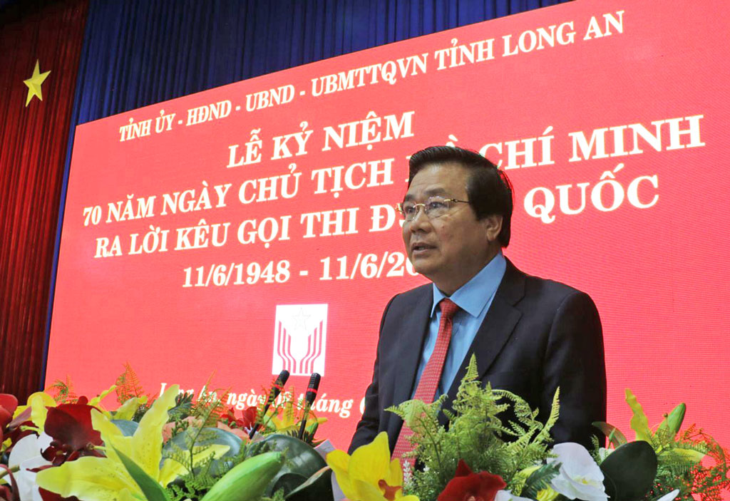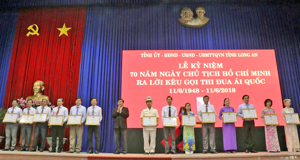 Sáng 08/6, Tỉnh ủy - HĐND - UBND - UBMTTQ Việt Nam tỉnh Long An long trọng kỷ niệm 70 năm Ngày Chủ tịch Hồ Chí Minh ra lời kêu gọi thi đua ái quốc (11/6/1948 - 11/6/2018).